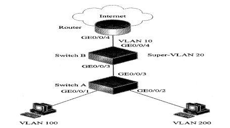 [SwitchA-GigabitEthernet0/0/3]port trunk allow-pass vlan 100 200