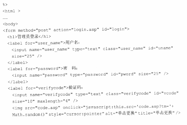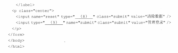 以下是该后台管理登录页面login.asP的部分代码,请仔细阅读该段代码,根据图4-1将(1)〜(9)的空缺代码补齐。