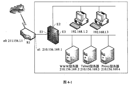 某公司为保护内网安全,采用防火墙接入Internet,网络结构如图4-1所示。