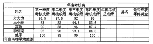用Excel创建“年度考核表”(内容如下表所示),按照题目的要求完成后,用Excel的保存功能直接存盘。