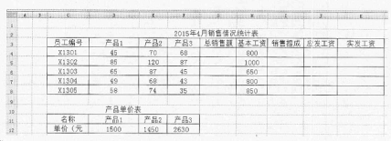 在Excel的Sheetl工作表的C2:K8单元格和C10:F12单元格区域内分别创建“2015 年4月销售情况统计表”和“产品单价表”(内容如下图所示)。按题目要求完成后, 用Excel的保存功能直接存盘。