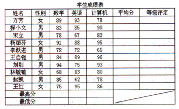 (15分) 用Excel创建“学生成绩表”(内容如下图所示)。按题目要求完成之后,用Excel 的保存功能直接存盘。