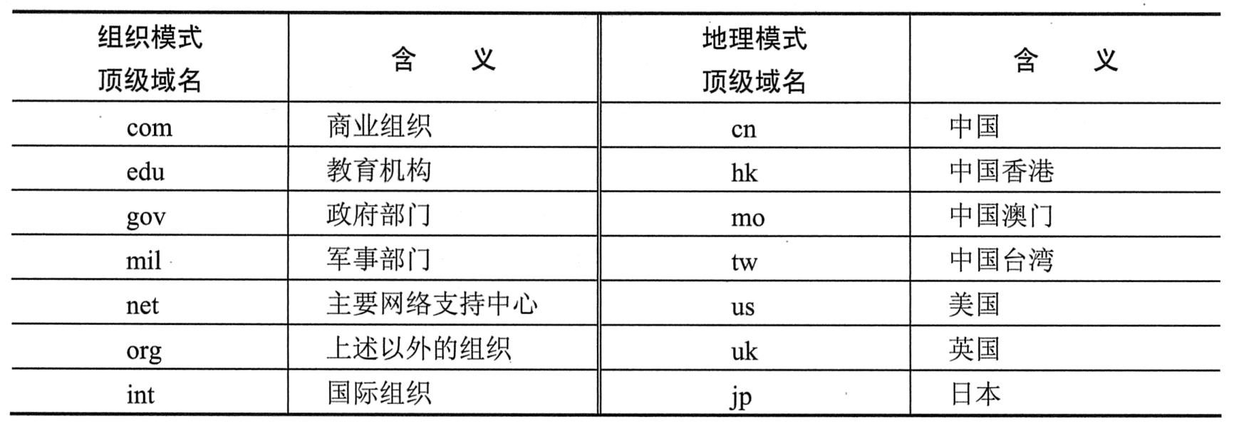 域名由两个或两个以上的词构成,中间由“.”隔开,最右边的那个词称为顶级域名。在域名系统中,顶级域名划分为组织模式和地理模式两类。