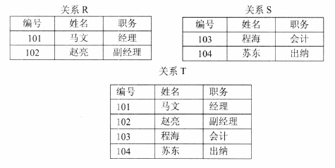 若有以下表所示的关系R、S、T,则下列等式中正确的是(58)。