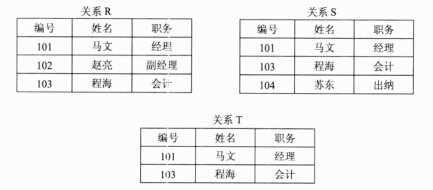 若有以下表所示的关系R、S、T,则下列等式中正确的是(57)。