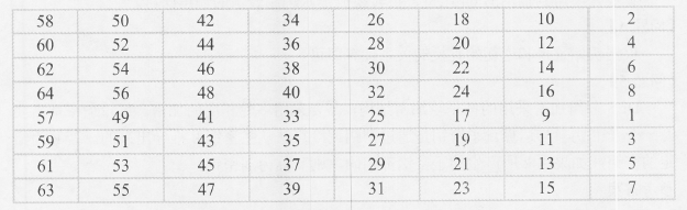 置换时,从左上角的第一个元素开始,表示输入的铭文的第58位置换成输出的第1位,输入明文的第50位置换成输出的第2位,从左至右,从上往下,依次类推。