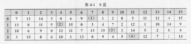 DES是一种分组密码,已知DES加密算法的某个S盒如表4-1所示。