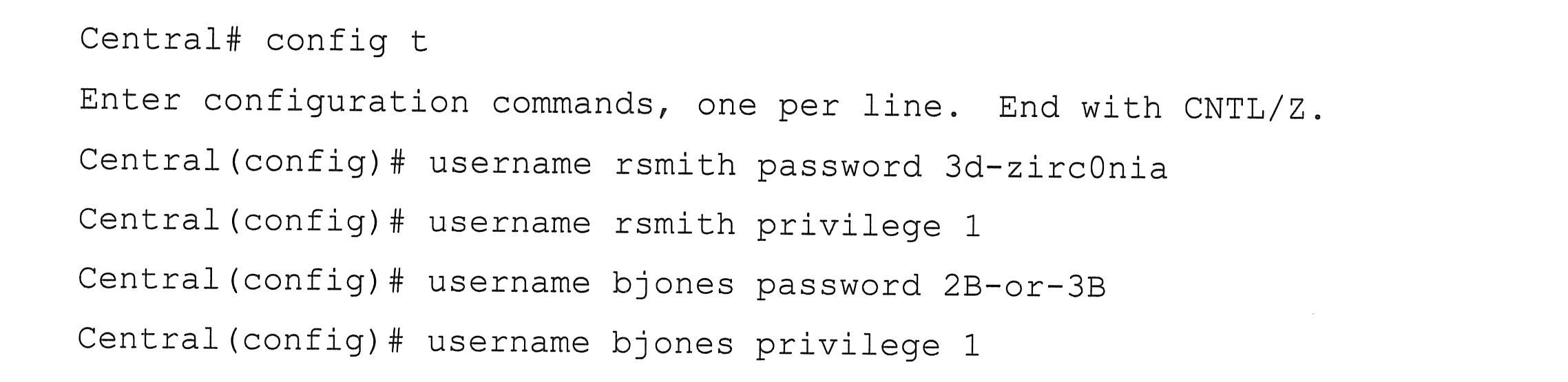 当一个用户访问路由器时,必须经过认证通过后才能被允许。某路由器用户名和设置口令配置如下。