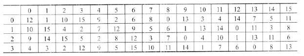 已知DES算法S盒如下,如果该S盒的输入为001011,则其二进制输出为(26)。