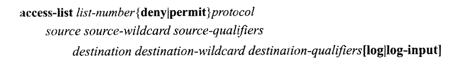 Cisco IOS的包过滤防火墙有两种访问规则形式:标准IP 访问表和扩展IP访问表。标准 IP 访问控制规则的格式如下: