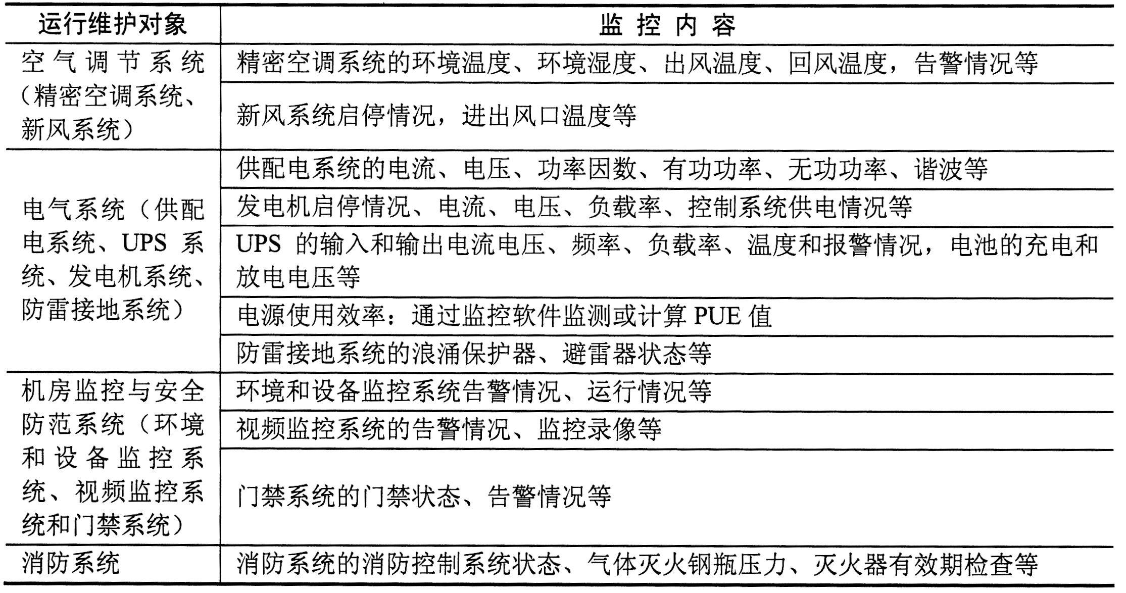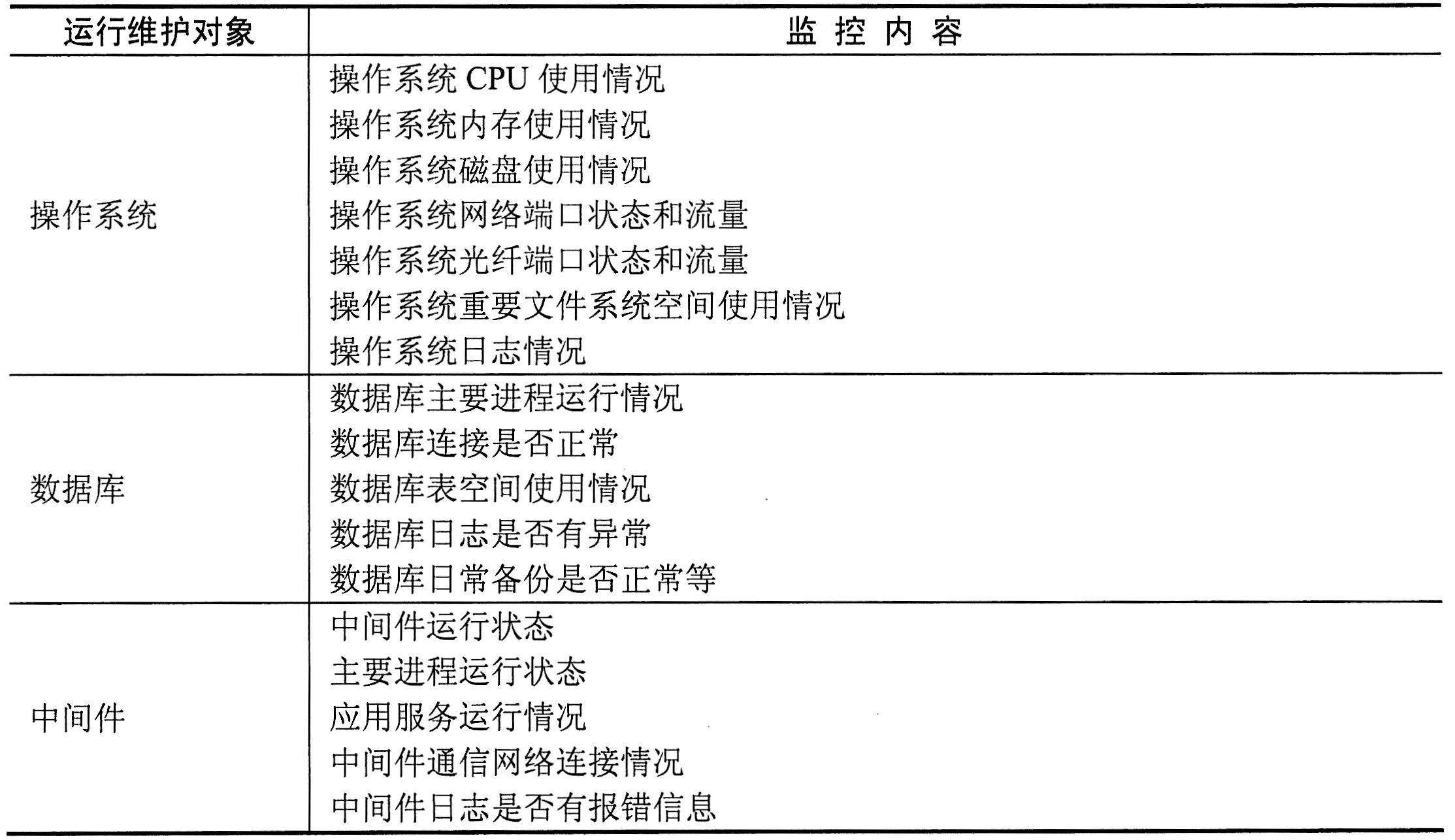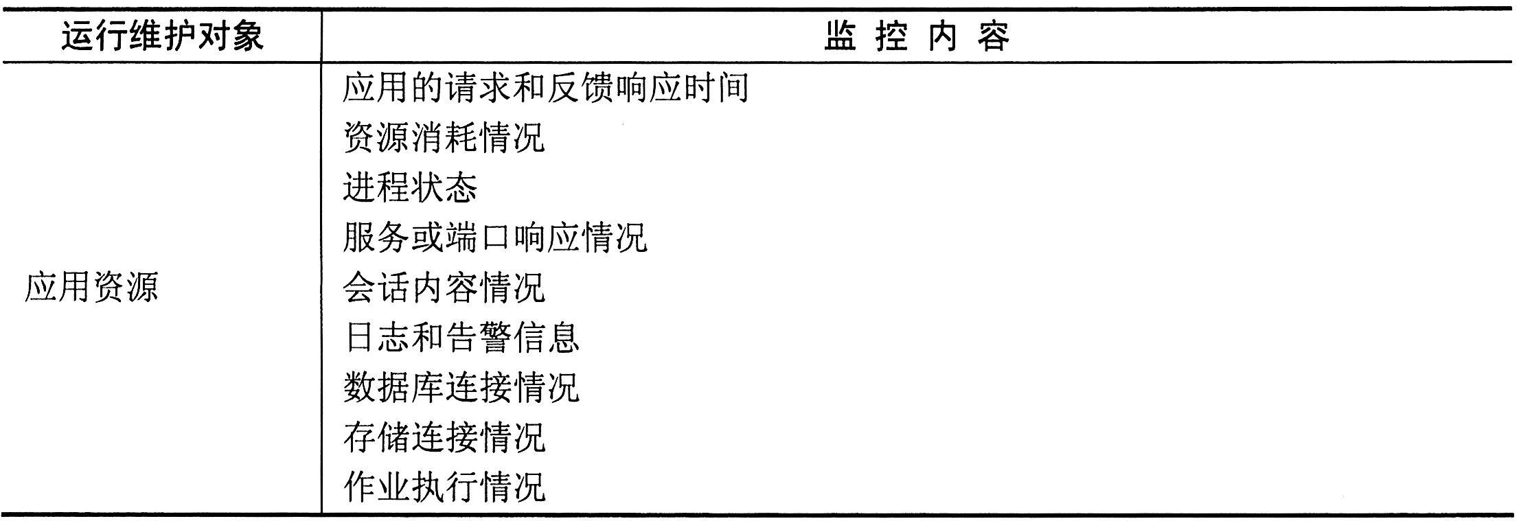 服务运营过程中常见的信息系统监控内容如下4个表所示。