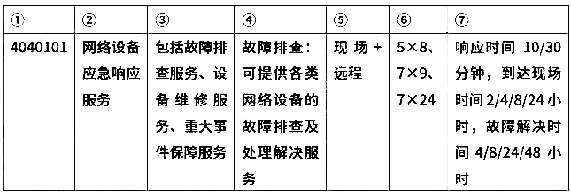 下表为A公司的服务目录参考实例,其中表头空缺⑥处应填写:()。