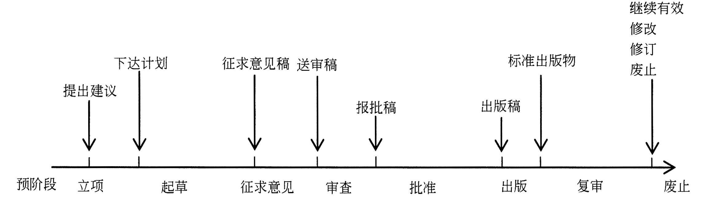 国家标准的制定有一套正常程序,分为预阶段、立项阶段、起草阶段、征求意见阶段、审查阶段、批准阶段、出版阶段、复审阶段以及废止阶段。
