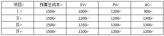 项目Ⅰ、Ⅱ、Ⅲ、Ⅳ的工期都是三年,在第二年末其挣值分析数据如下表所示。按此趋势,项目(56)应最早完工。