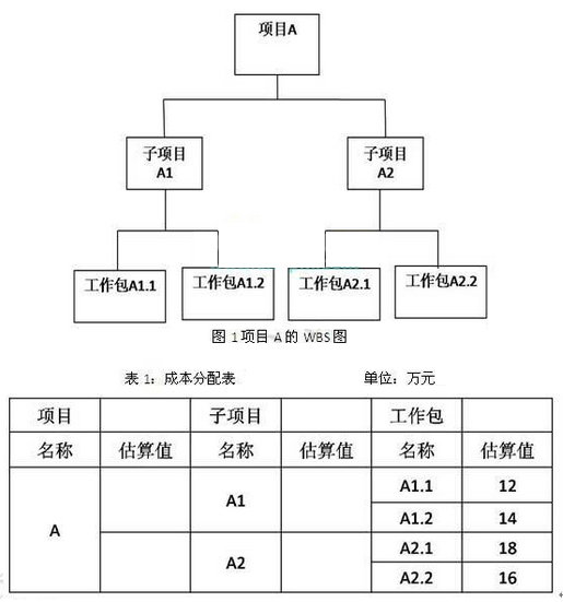 阅读下列说明,回答问题1至问题4,将解答填入答题纸的对应栏内。 【说明】 项目组成员小张根据项目经理的要求绘制了项目A的WBS图(图1),并根据工作量对项目的成本进行了分配,见表1。