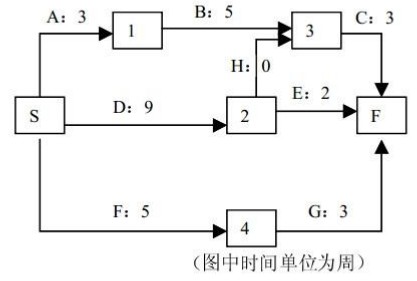 下图中活动“G“可以拖延(36)周而不会延长项目的最终结束日期。