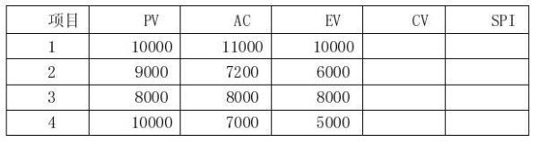 .进度偏差(Schedule Variance,SV):SV=EV-PV。SV>0,表示项目实施进度超前;SV<0,表示项目实施进度滞后。