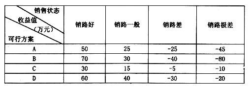三个备选投资方案的决策损益表如下,如果采用最大最小决策标准(悲观主义),则选择()。