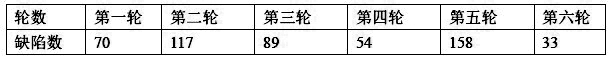 编程结束后,进入了测试阶段。第一轮测试,发现了70个缺陷。项目组对发现的缺陷进行了修改,又重新提交了测试。第二轮又发现了100多个缺陷,就这样反复修改和测试,直到第六轮,发现了33个缺陷。各轮发现的缺陷数如下: