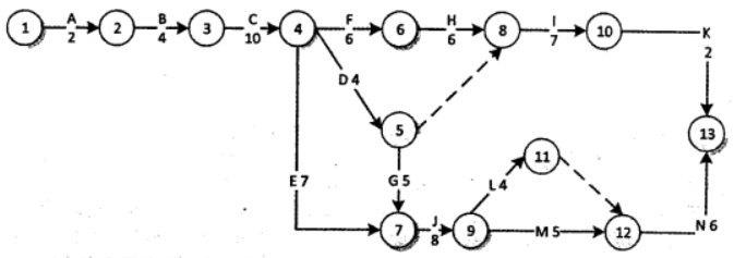 (1)先行工作和后续工作:先行工作指对于某工作而言,从网络图的第一个节点(起点节点)开始,顺箭头方向经过一系列箭线与节点到达该工作为止的各条通路上的所有工作。后续工作指相对于某工作而言,从该工作之后开始,顺箭头方向经过一系列箭线与节点到网络图最后一个节点(终点节点)的各条通路上的所有工作。