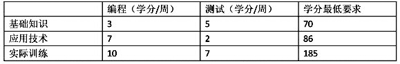 某IT 企业计划对一批新招聘的技术人员进行岗前脱产培训培训内容包括编程和测试两个专业, 每个专业要求在 基础知识、应用技术和实际训练三个方面都得到提高。根据培训大纲,每周的编程培训可同时获得基础知识3 学分、 应用技术7学分以及实际训练10学分;每周的测试培训可同时获得基础知识5学分、应用技术2 学分以及实际训练7学分。企业要求这次岗前培训至少能完成基础知识70学分,应用技术86学分,实际训练185 学分。以上说明如下表所示: