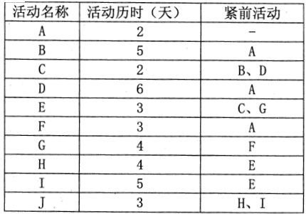 信息系统项目包含如下十个活动。各活动的历时、活动逻辑关系如下表所示: