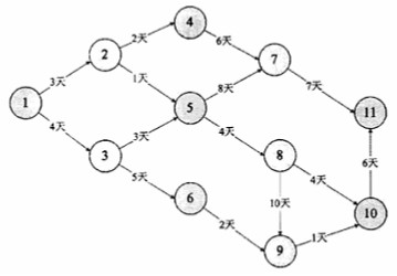 下图为某工程进度网络图,结点1为起点,结点11为终点,那么关键路径为(37),此工程最快(38)天完成。