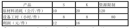 某工厂生产两种产品 S 和 K,受到原材料供应和设备加工工时的限制。单件产品 的利润、原材料消耗及加工工时如下表。为获得最大利润,S 应生产(68)件。