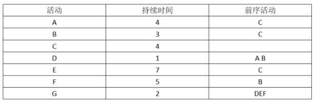 某项目各活动先后顺序及持续时间如下表所示,该项目的关键路径为(32)。