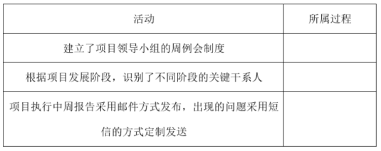 (2)请指出项目经理的如下活动对应的管理过程(从候选答案中选择正确选项,将该选项的编号填入答题纸对应栏内)。