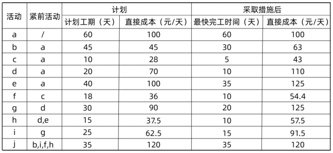 项目要求150天完工,请写出关键路径上可压缩的活动成本变化情况。?请绘出成本最优的压缩工期的方案和总成本的变化情况。