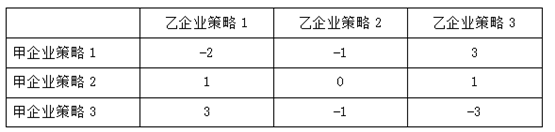 两家企业生产同种产品,为抢占市场规模,每家企业都制定了三个市场推销策略,两家企业的市场策略会影响双方的市场规模占有情况,赢得矩阵如下:
