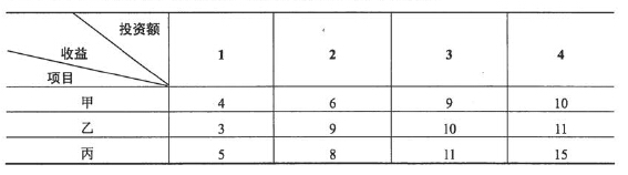 某公司现有400万元用于投资甲、乙、丙三个项目,投资额以百万元为单位,已知甲、乙、丙三项投资的可能方案及相应获得的收益如下表所示: