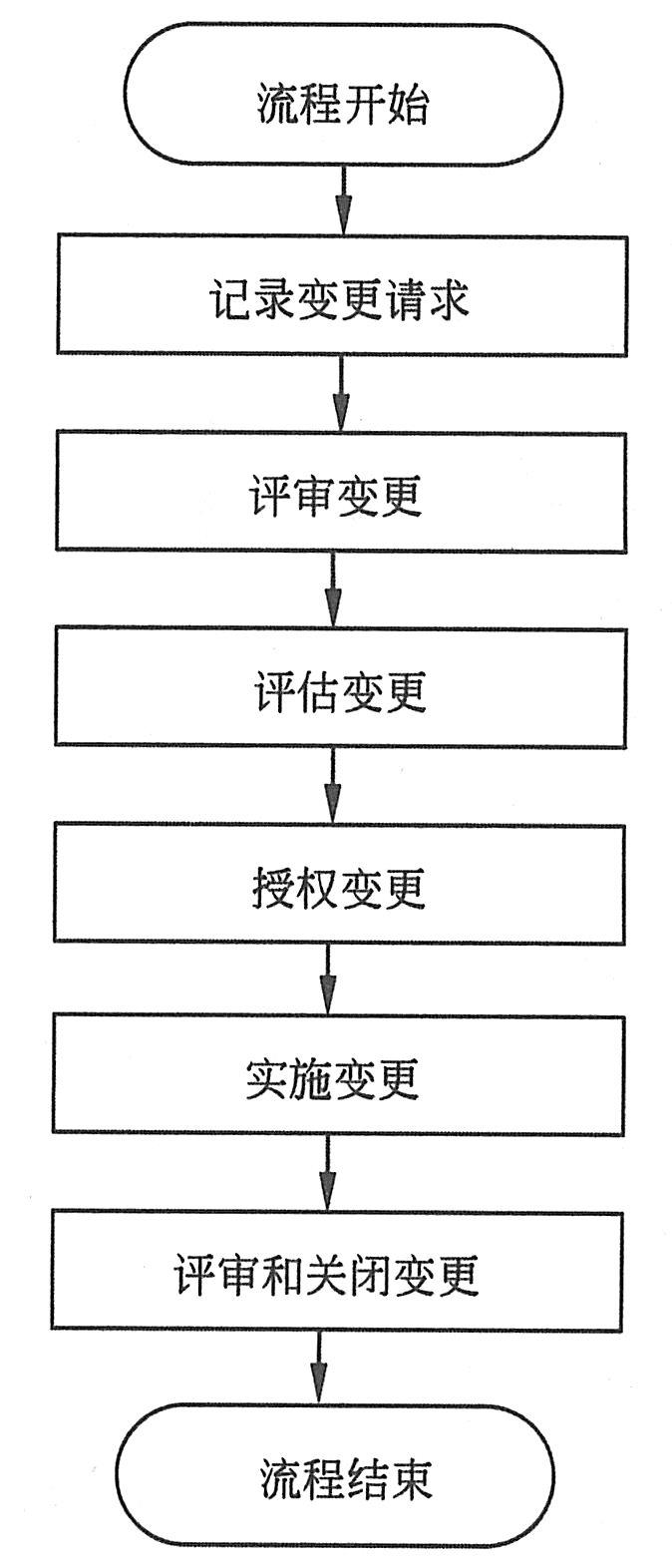 变更管理的主要流程包括了变更请求、评审、评估、授权、实施、评审和关闭变更等(如下图所示)。为了保证对变更整体的控制,都应该建立专门的变更控制委员会。变更控制委员会是对变更进行评审、评估、授权等操作的团体。