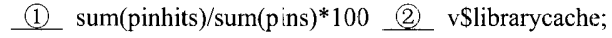 (1)请补充填写Oracle数据库中检查共享池命中率的SQL语句。