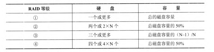 (1)请补充表格中的RAID等级,将①~④的正确答案填入答题纸中对应栏内。