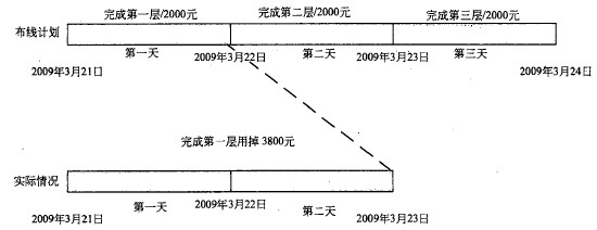 下图是一项布线工程计划和实际完成的示意图,2009年3月23日的 PV、EV、AC 分别是(46)。