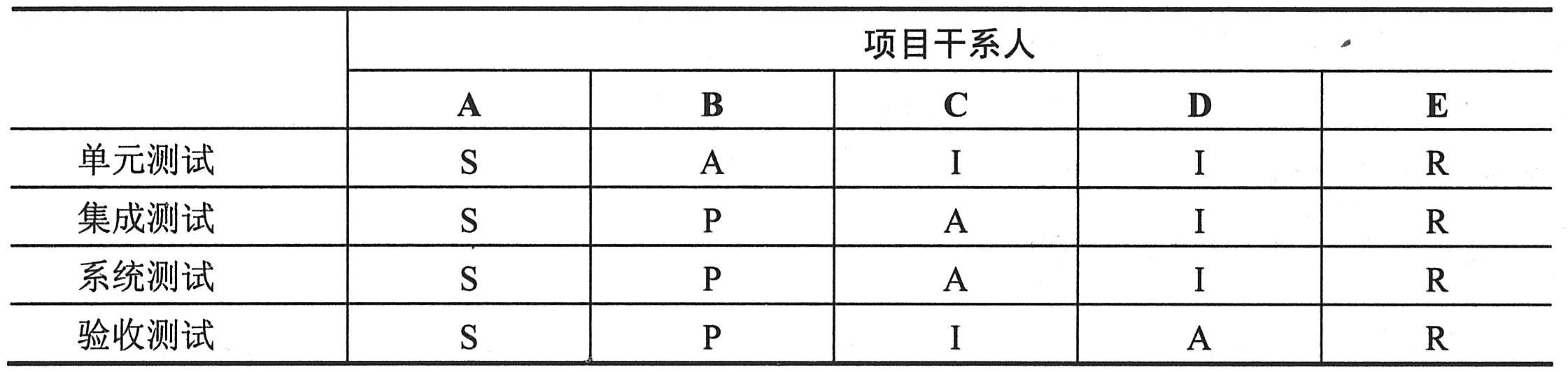 在制作完OBS之后,项目经理就可以开发责任分配矩阵(RAM)了。责任分配矩阵为项目工作(用WBS表示)和负责完成工作的人(用OBS表示)建立一个映射关系。除了将RAM用于具体的工作任务分配之外,RAM还可以用于定义角色和职责间的关系。此时,RAM包括项目中的干系人,下表给出一个例子,表明不同类型的项目干系人在项目过程中的责任,是负责人(A)还是参与者(P),是为项目过程提供输入(I),还是评审(R)和签字确认者(S)。这个看似简单的东西为项目经理提供了一种有效地管理项目重要干系人和角色期望的工具。
