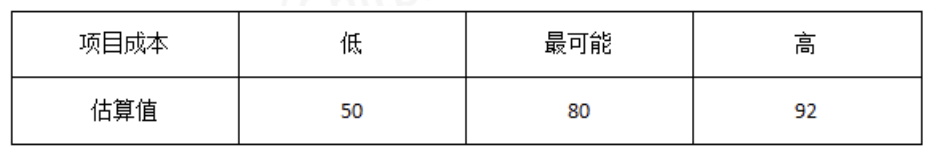 某项目成本估算区问如图所示 (单位:万元),则在84万元内完成项目的可能性为:()。