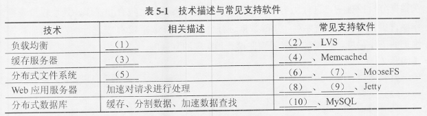 (10分) 针对李工提出的改进方案,从a~j中分别选出各技术的相关描述和对应常见支持软件填入表5-1中的(1) ~(10) 处。