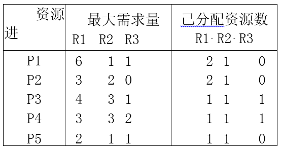 在这个例子中,我们先看一下未分配的资源还有哪些?根据试题给出的条件,从上表中可以看出,很明显,还有2个R1未分配,1个R2未分配,而R3全部分配完毕。