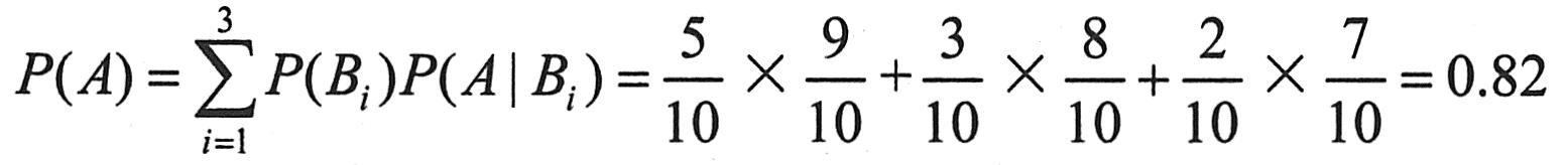 【解】A表示事件“取得的产品为正品”,B1B2B3分别表示事件“任取一件产品是甲、乙、丙厂生产的”。显然,B1B2B3是一个完全事件组。根据全概率公式,