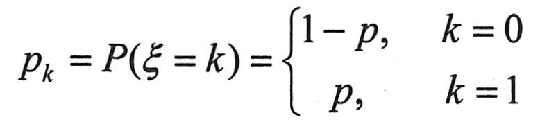 pk=Pξ=k)=p(1-pk-1k=0,1,2,…
