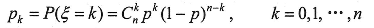 设伯努利概型在每次试验中事件A发生的概率为p,则n次实验中A发生的次数可以用服从二项分布Bnp)的随机变量来描述。