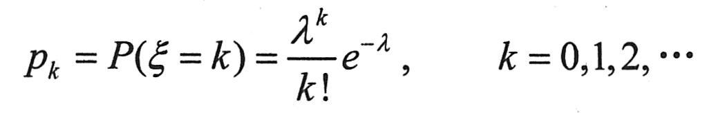 泊松(Poisson)分布可作为描述大量试验中稀有事件出现次数的概率分布的数学模型。例如,数字通信中的误码数、大批量产品中不合格品数、原子蜕变放射出的粒子数都可用服从泊松分布的随机变量来表示。