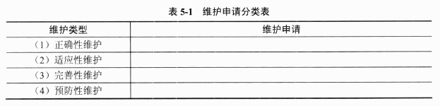请根据不同类型软件维护的特点,将上述(1)〜(9)的维护申请填入表5-1相应的类别中。