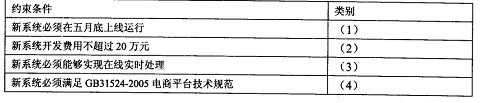 (8分) 系统约束条件可以分为四类,请将类别名称填入表中(1) ~ (4)对应的位置。 表1-2 约束条件分类