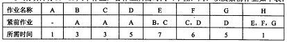 某项目有A~H八个作业,各作业所需时间(单位:周)以及紧前作业如下表: