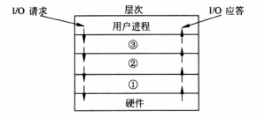 I/O设备管理一般分为4个层次,如下图所示。图中①②③分别对应(51)。