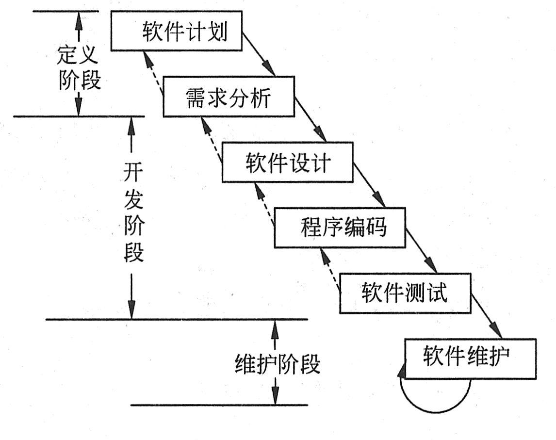 瀑布模型是将软件生命周期各个活动规定为依线性顺序连接的若干阶段的模型。它包括可行性分析、项目开发计划、需求分析、概要设计、详细设计、编码、测试和维护。它规定了由前至后、相互衔接的固定次序,如同瀑布流水,逐级下落。